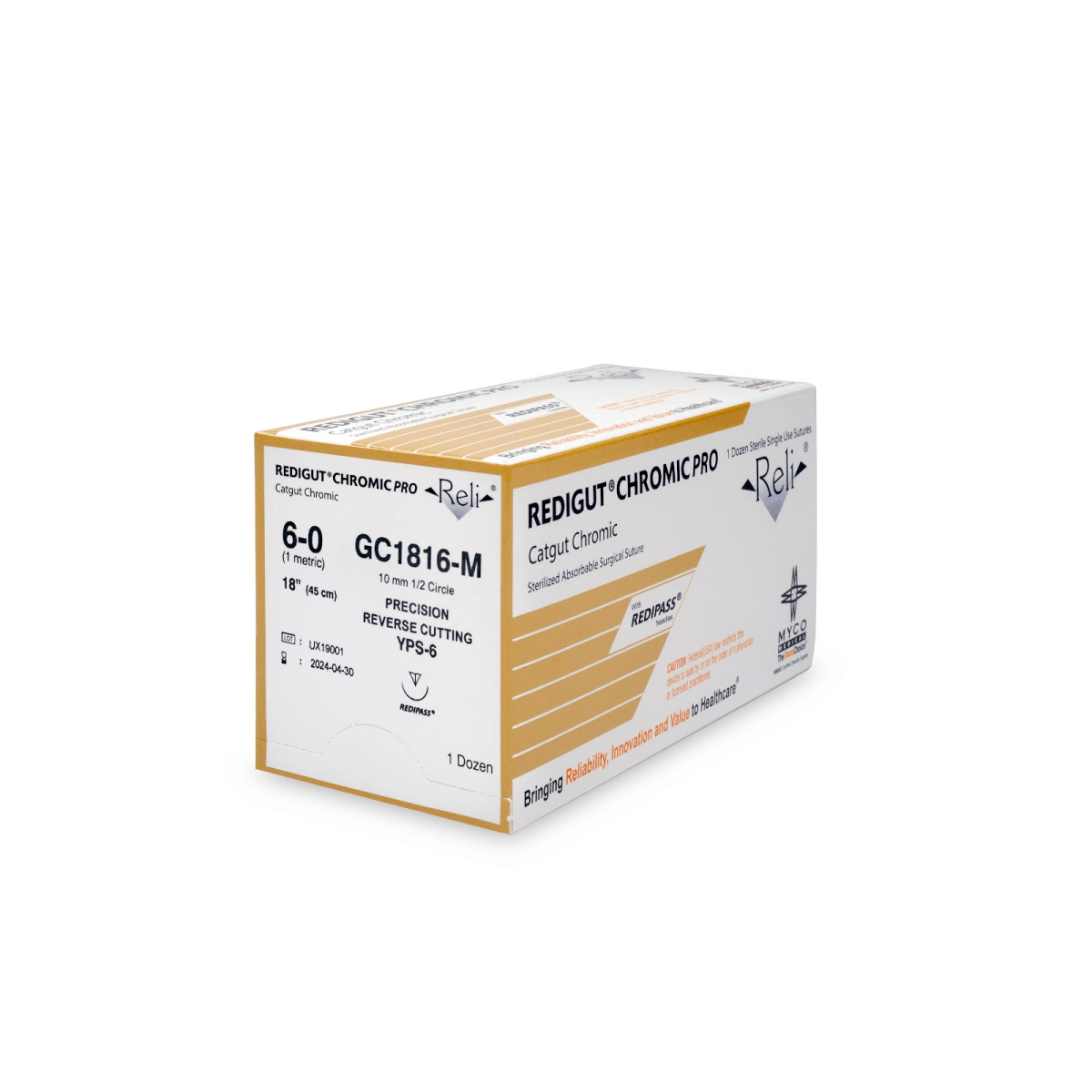 VF496-M - REDISORB® FAST PRO Absorbable Fast Absorbing, Coated, Braided, PGLA Synthetic Suture, Size 4-0, Length 18", 19 mm 3/8 Circle Precision Reverse Cutting Needle